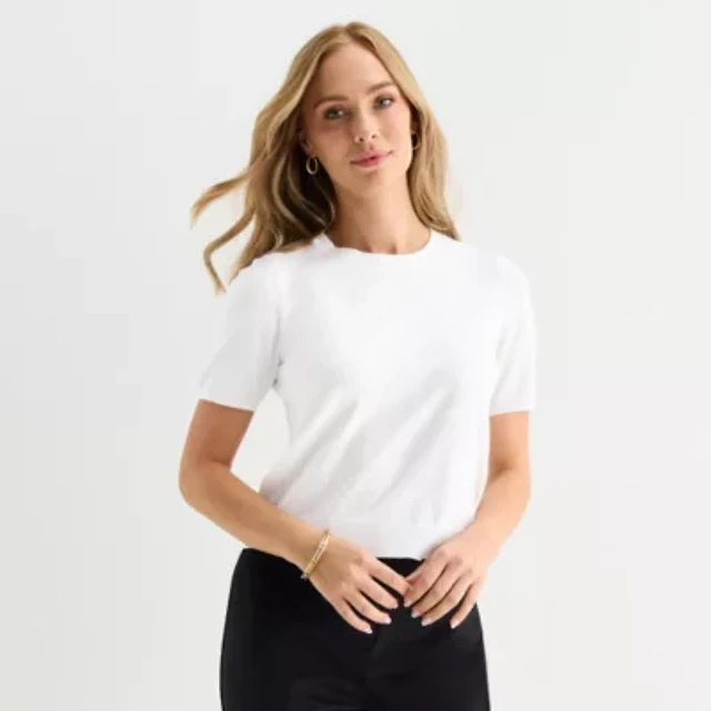Tahari Asl Women's Petite Striped Short-Sleeve Sweater Tee