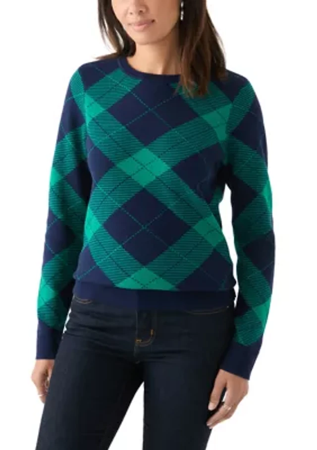 Women's Long Sleeve Crew Neck Jacquard Plaid Sweater