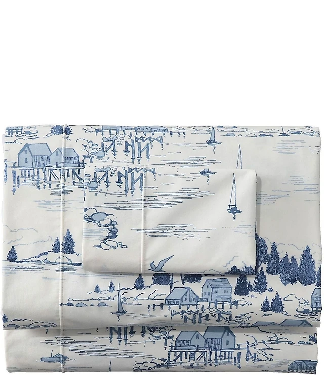 L.L.Bean Botanical Floral Printed Cotton Percale Sheet Set