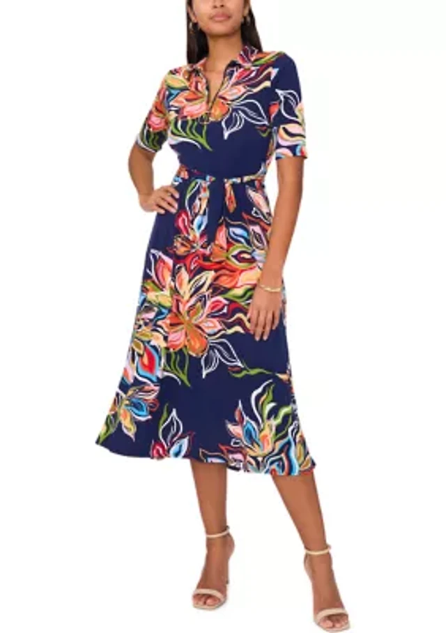 Kensie Short Sleeve Smocked Waist A-Line Midi Dress
