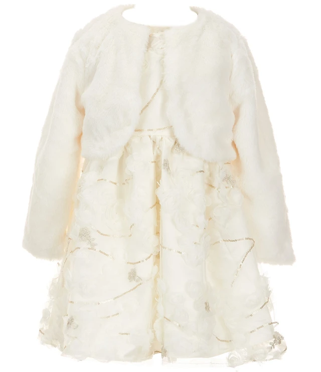 Rare Editions Little Girls Long-Sleeve Faux-Fur Bolero Jacket & Sleeveless Illusion-Bodice Soutache-Detailed Fit-And-Flare Dress