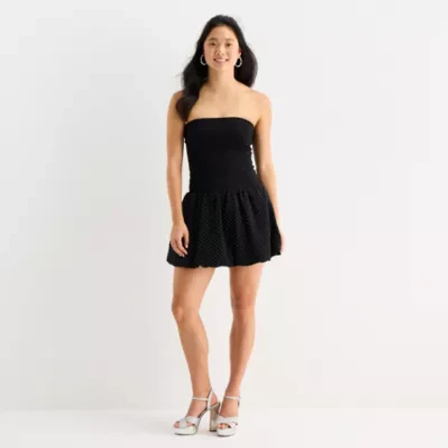 B Darlin Juniors' Sweetheart Spaghetti-Strap Cold-Shoulder Twill Fit & Flare Dress