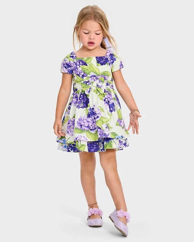 Girls Pleated Tiered V-Waist Dress