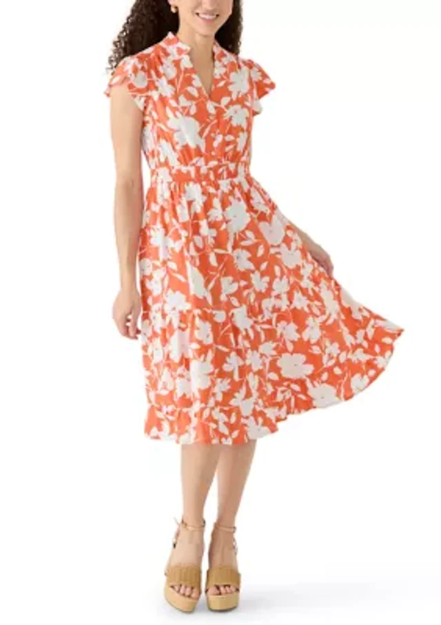 Faherty Coastal Elia Woven Short Sleeve Smocked Dress