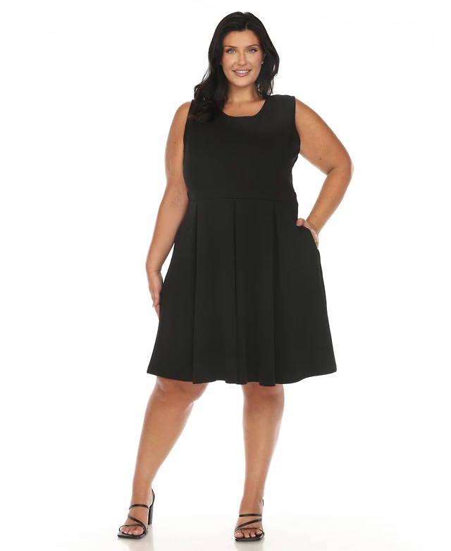 Plus Sleeveless Midi Fit and Flare Pocket Dress