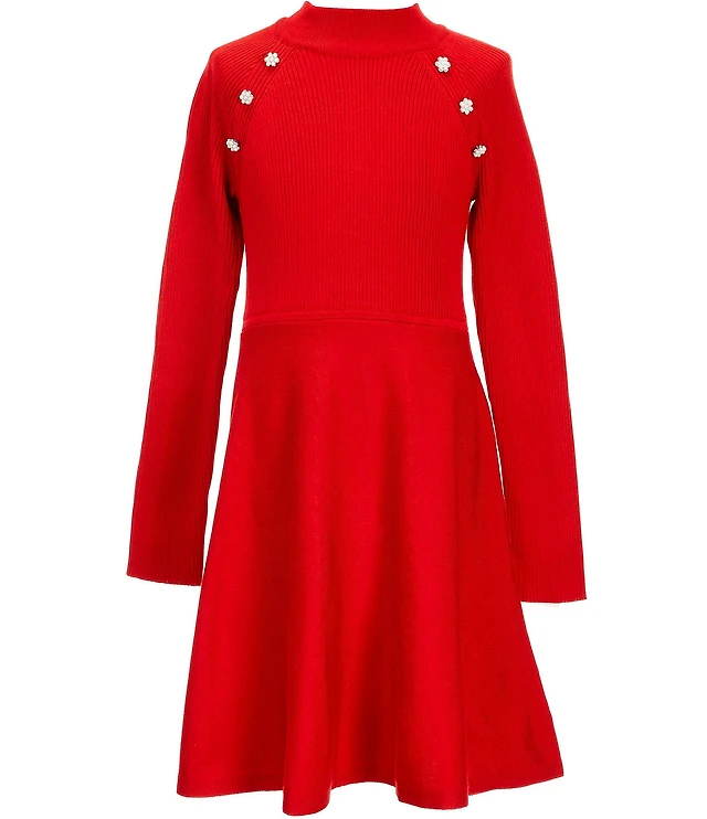 Rare Editions Big Girls Long-Sleeve Glitter-Knit Fit-And-Flare Dress