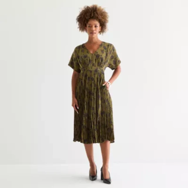 52seven Womens Plus Short Sleeve Floral Midi Fit + Flare Dress