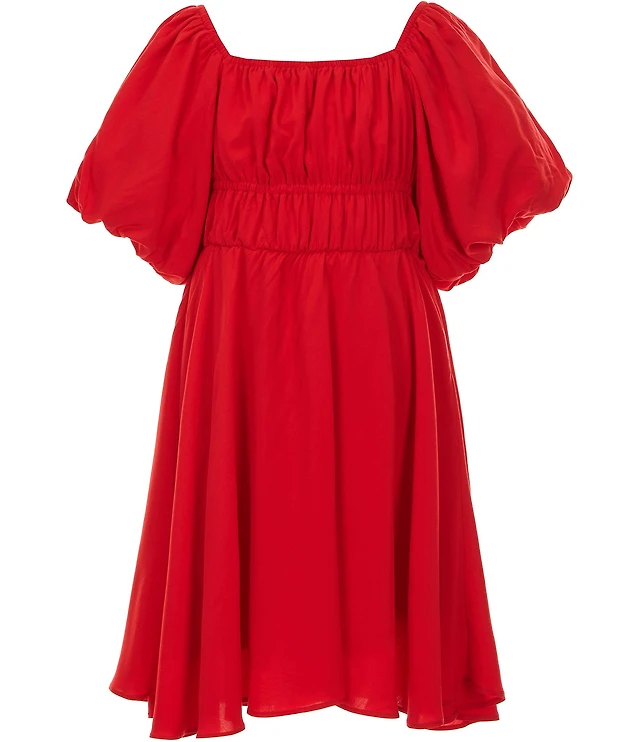 Trixxi Juniors' Short Puff-Sleeve Drop Waist Dress