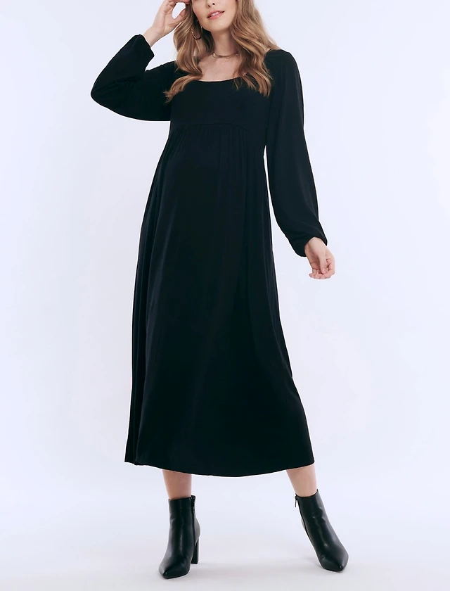 Taylor Women's Shirred Drop Waist Square Neck Dress