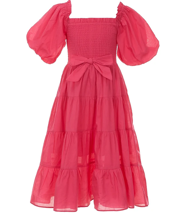 A Loves A Big Girls Bubble Sleeve Smocked Bodice Tier Dress