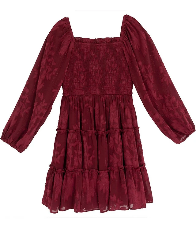 Rare Editions Big Girls Smocked Burnout Chiffon Long Sleeve Dress
