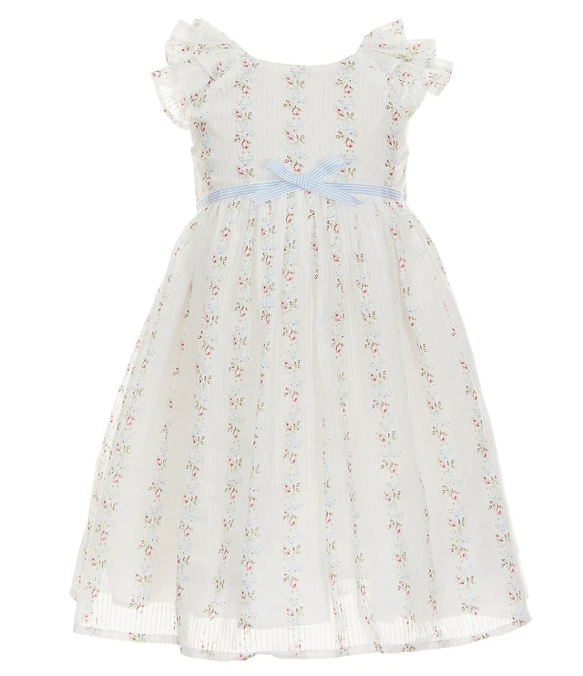 Rare Editions Little Girls Metallic Foil Dot Mesh Illusion Dress
