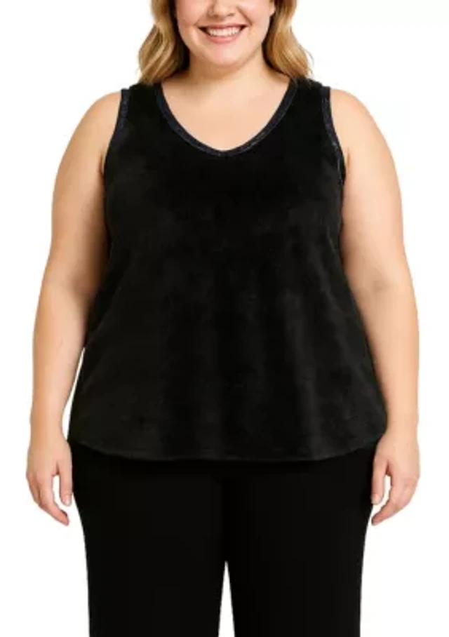Trina Turk Kary Floral Print Velveteen Round Neck Sleeveless Button Front Vest Top