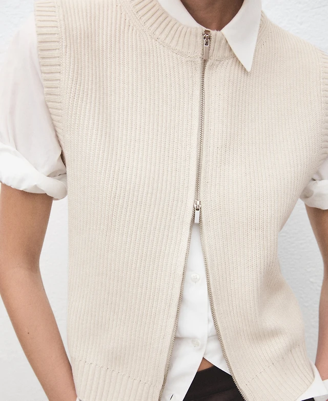 Eileen Fisher Organic Cotton Blend Double Knit High Neck Sleeveless Zip Front Vest