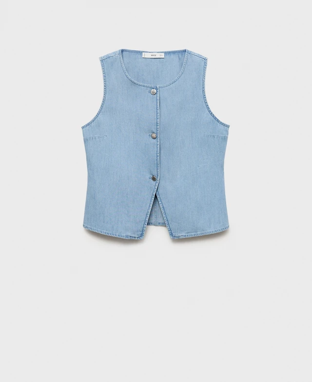 A Loves A Woven Scoop Neck Embellished Button Front Sleeveless Cropped Coordinating Vest