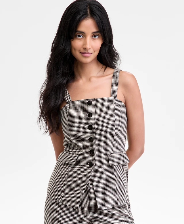 Kenneth Cole Women's Longline Glen Plaid One-Button Vest