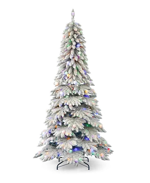 Nearly Natural 6 Foot Snow Tipped Flocked Fir With Berries And 906 Bendable Branches And 200 Led Lights And 50 Led Globe Lights Pre-Lit Christmas Tree
