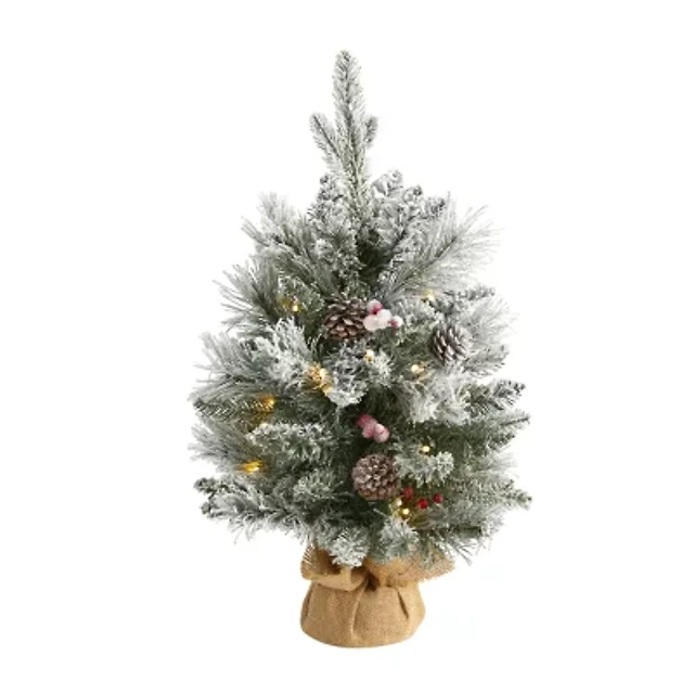Nearly Natural Frosted Foot Pre-Lit Flocked Pine Christmas Tree