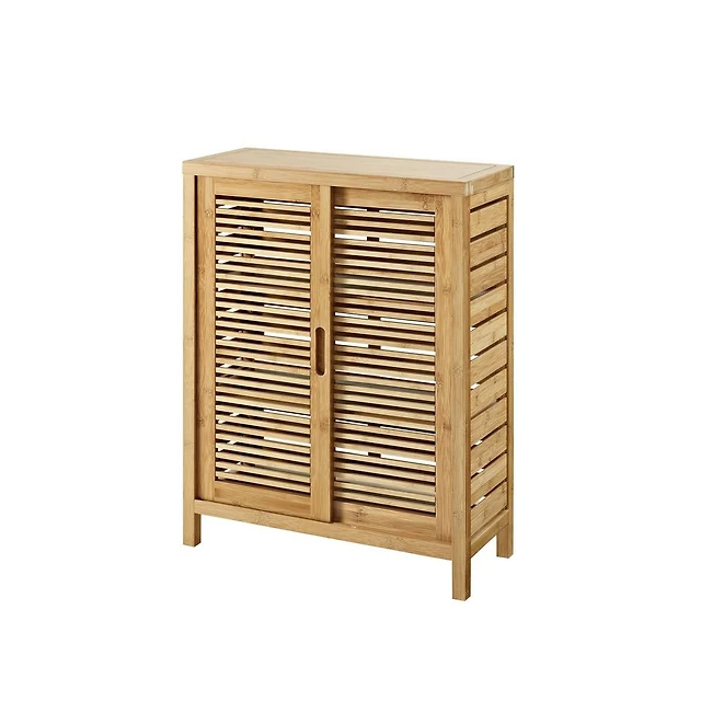 Bamboo Floor Cabinet Bathroom Storage Cabinet Storage Organizer w/ Shutter Doors
