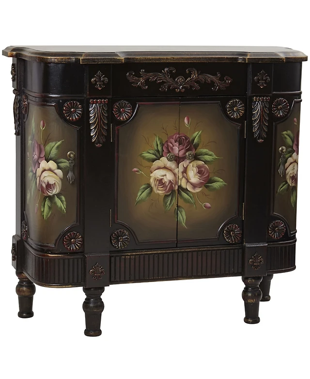 Accent Storage Cabinet Adjustable Shelves Antique 2 Door Floor Cabinet Cream