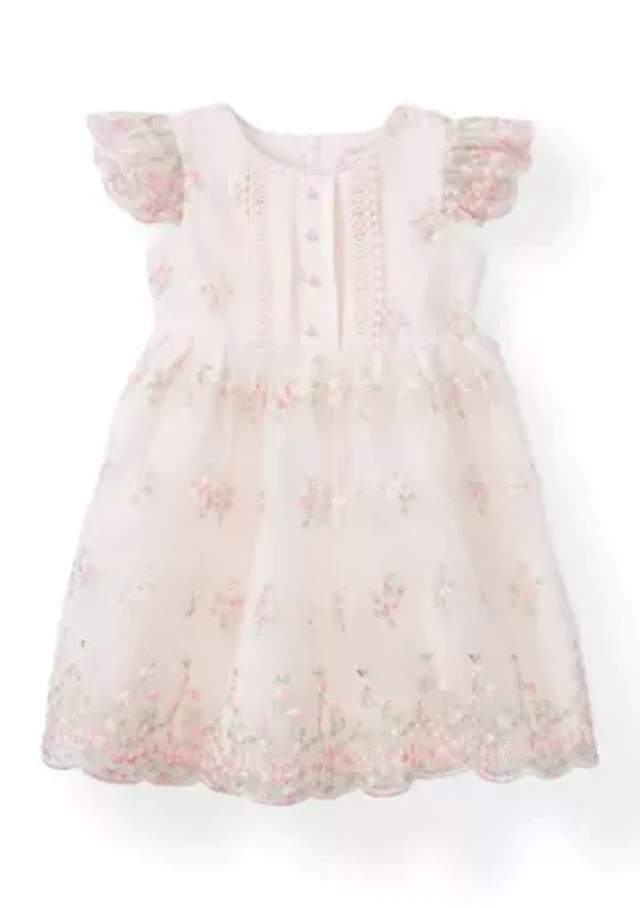 Dress the Population Savannah Jacquard Floral Print Tiered Tea Length Dress