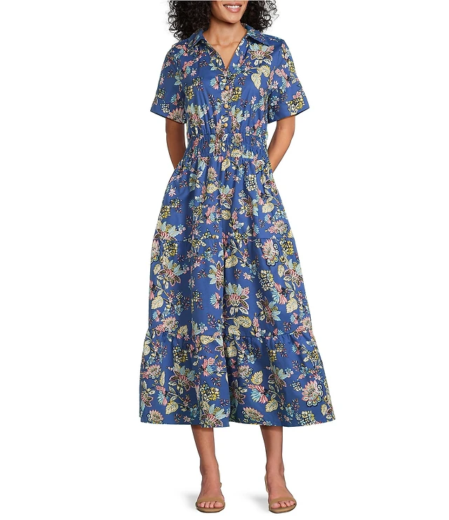 Women's Short Sleeve V-Neck Floral Print Midi Dress