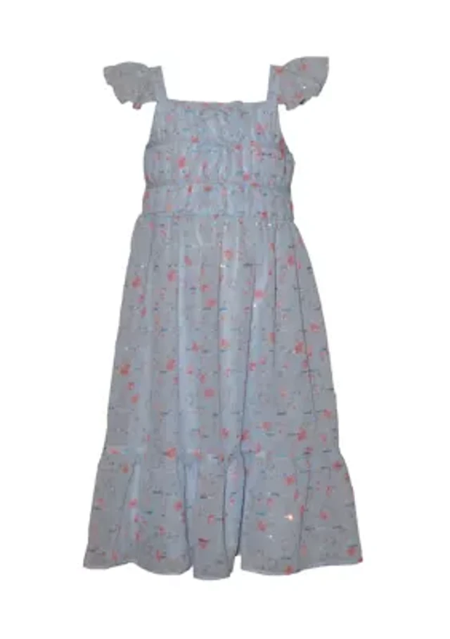 Women's Flutter Sleeve Floral Print Chiffon Dress