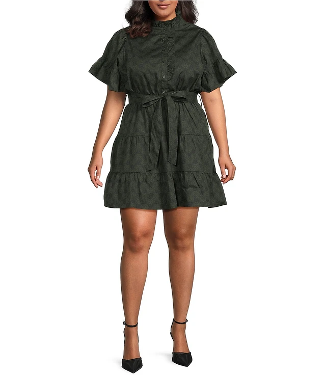 Sugarlips Plus Size Floral Palmer Eyelet Short Sleeve Long Dress