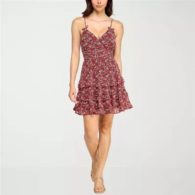 Blondie Nites Spaghetti Strap Sleeveless Sequin Floral Dress