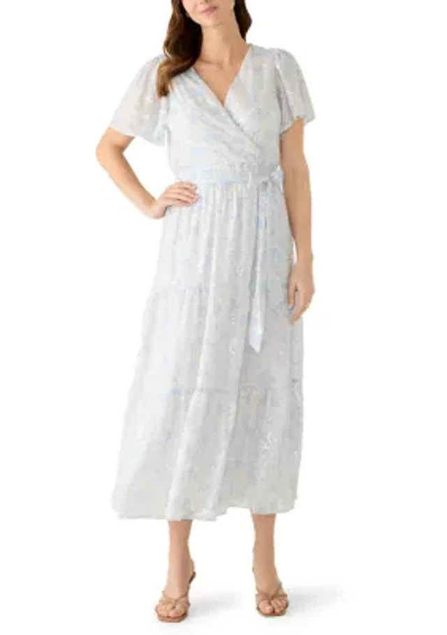 Sl Fashions Women's V-Neck Floral Burnout Dress