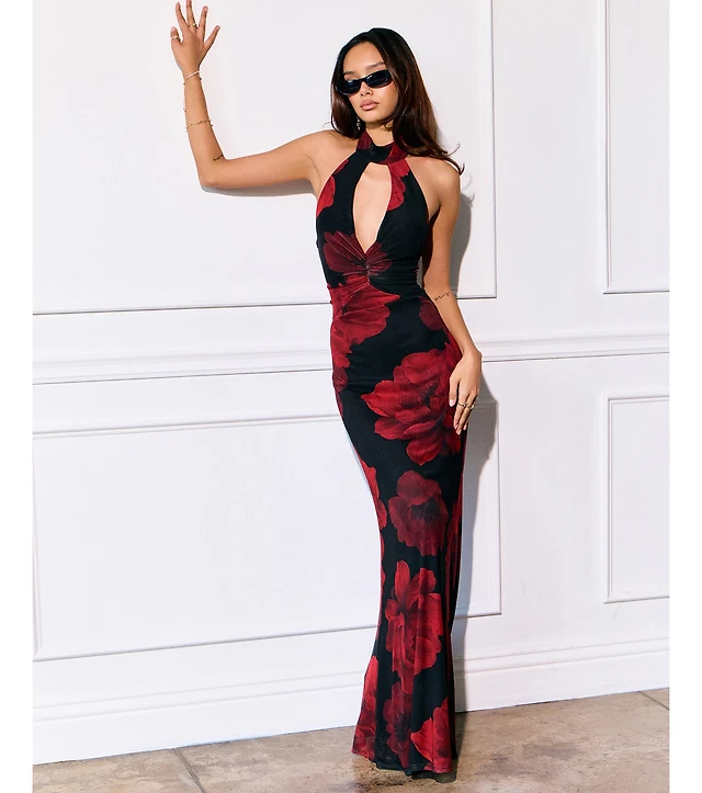 Delaney Formal Cowl Neck Floral Dress