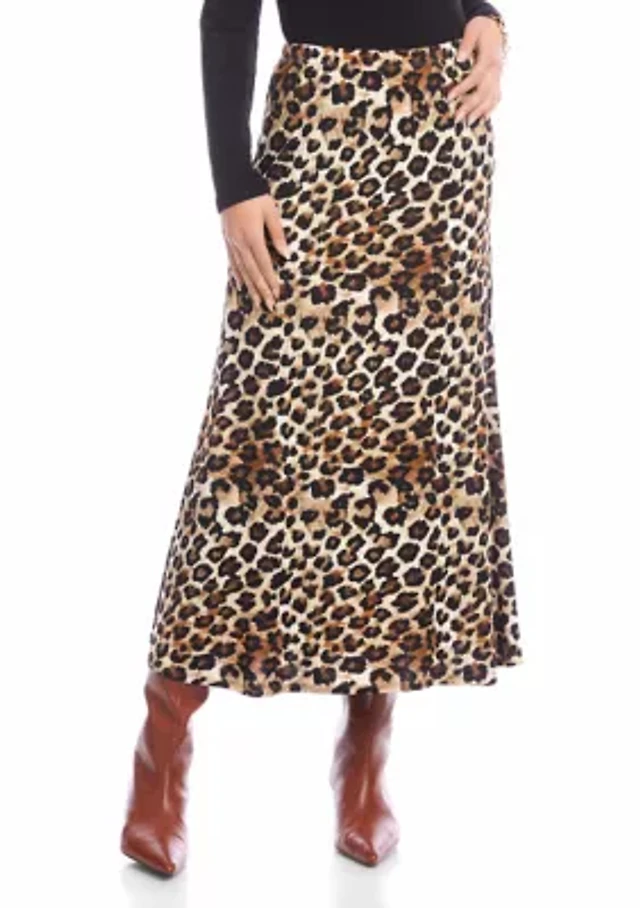 Karen Kane Petite Size Floral Front Slit A-Line Pull-On Midi Skirt