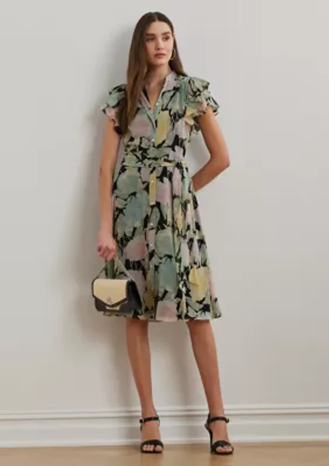 Lauren Ralph Petite Floral Print Tie-Front Shirt Dress