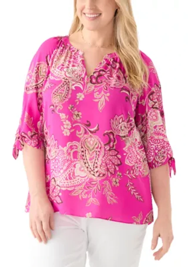 St. John's Bay Womens Plus Split Tie Neck 3/4 Sleeve Blouse