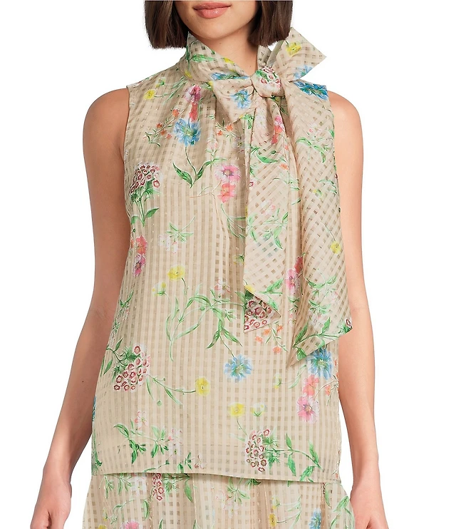 Antonio Melani Winona Coordinating Western Printed Sateen Sweetheart Neck Sleeveless Blouse