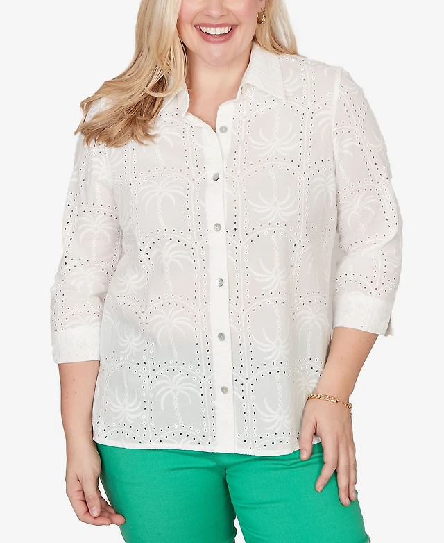 Alfred Dunner Women's Lake Champlain Embroidered Flowers with Side Tie Ruching Top