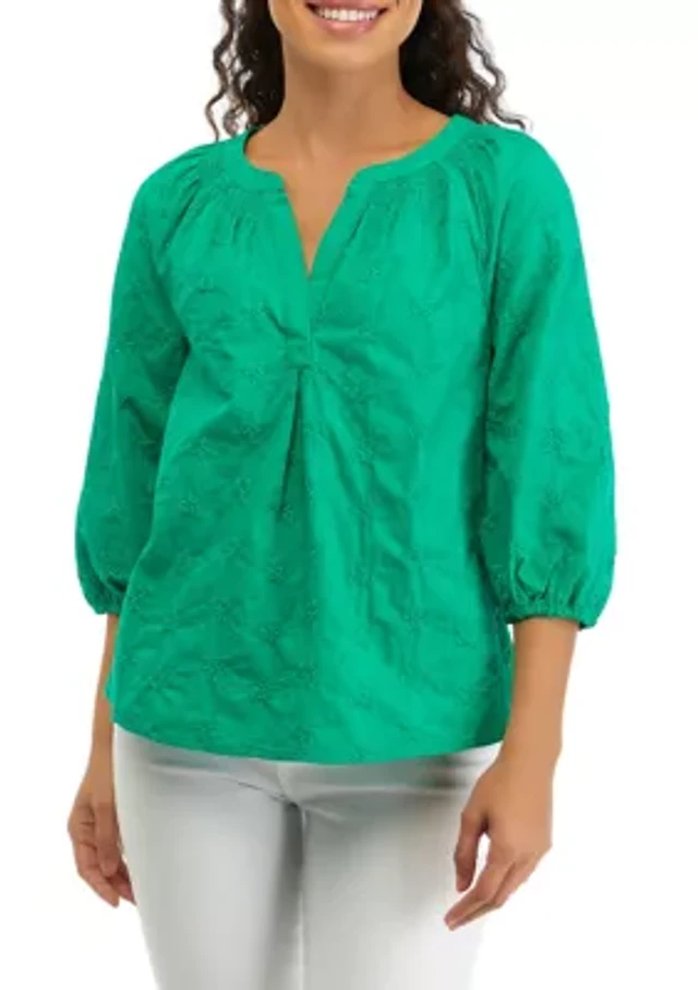 Petite 3/4 Sleeve Peasant Top