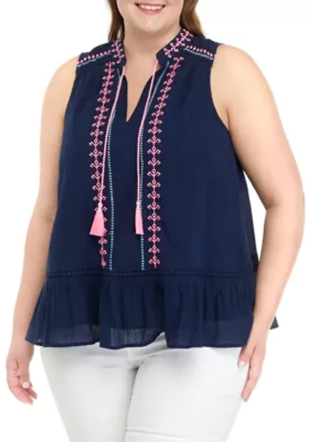 Plus Sleeveless Crochet Peasant Top