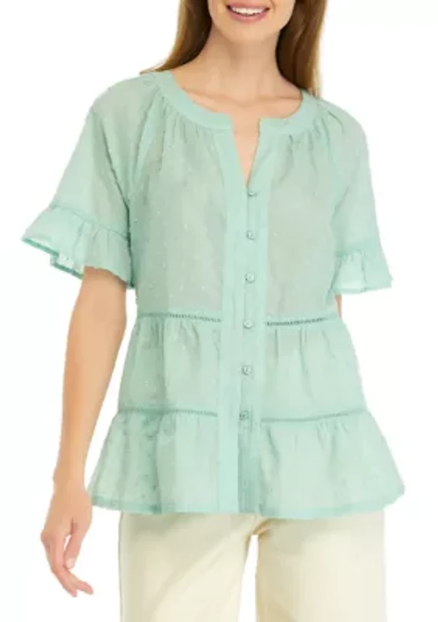 Petite Natural Instinct Floral Texture Top with Asymmetric Embroidery