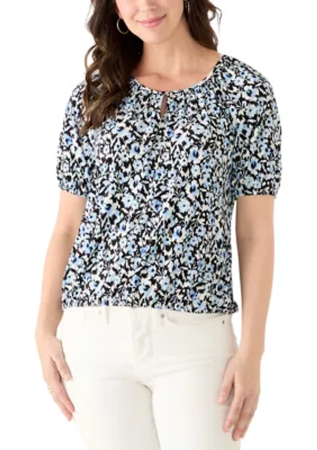 Petite Printed Peasant Top
