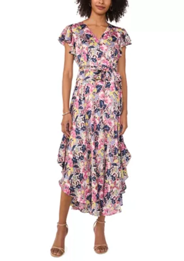 Plus Flutter Sleeve Belted Maxi Dress