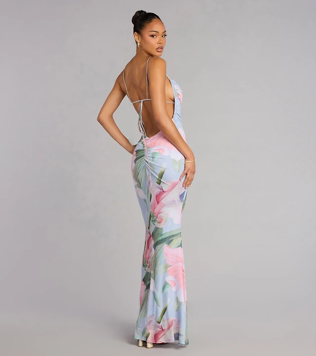 Elora Floral Sequin Lace-Up Mermaid Dress