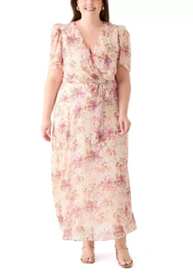 Plus Sleeveless Flutter Sleeve Maxi Dress