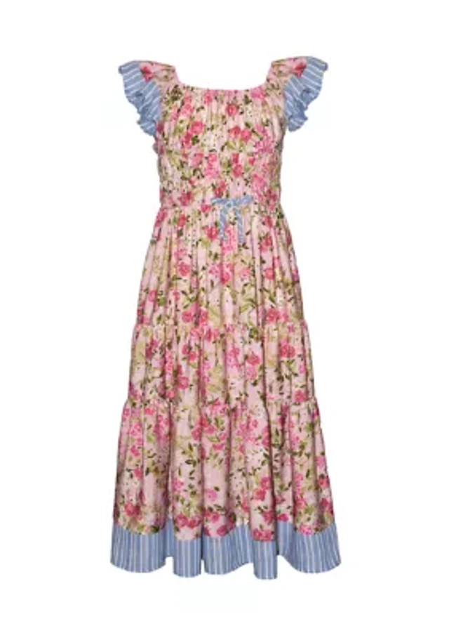Copper Key Big Girls Flutter Sleeves Eyelet Midi Dress