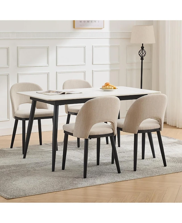 East West Furniture 5-Piece Modern Dining Set- 4 Parson Dining Chairs with Coffee Linen Fabric Seat and Button Tufted Chair Back