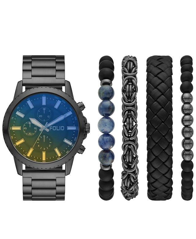 Folio Men's Quartz Three-Hand Black Alloy Watch Set, 44mm