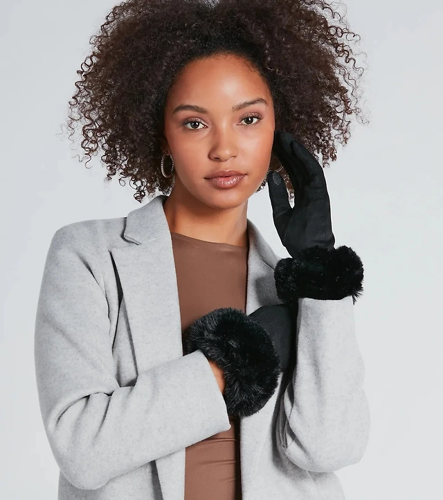 Style Forecast Sherpa Trim Faux Leather Gloves