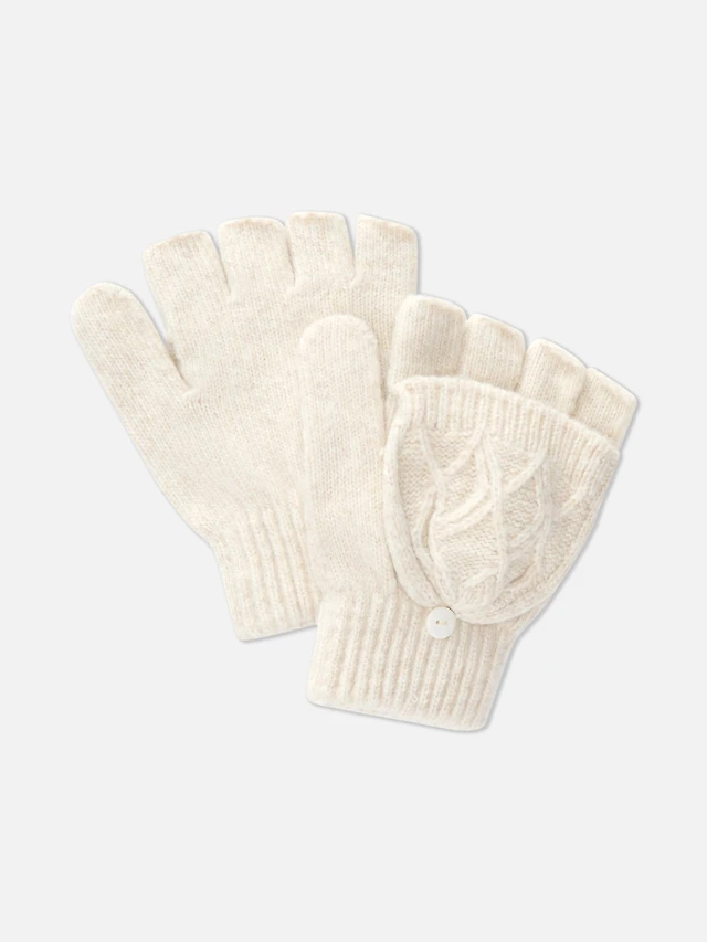 Cable Knit Flip Top Gloves