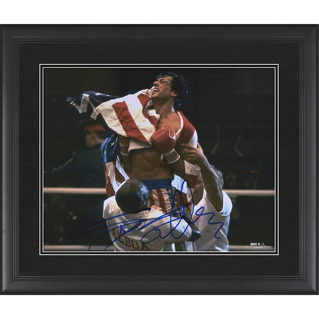 Sylvester Stallone Rocky IV Framed Autographed 16" x 20" Draped in the American Flag Photograph