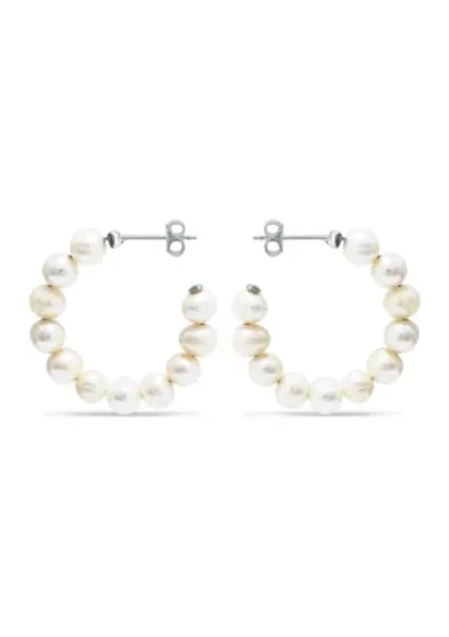 Spero London Treated Freshwater Cultured Baroque Pearl Hoop Earrings